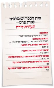 כשעולה שאלת קצב ההרשמה של תלמידים לבית הספר, הטון האופורי משתנה במקצת. "חשוב לציין שאת ההרשמה לבית הספר בנאות פרס פתחנו רק באפריל, אחרי חג הפסח, כשראינו שהבנייה התקדמה יפה", אומרת טרוק, "בשאר בתי הספר היסודיים ההרשמה נגמרה כבר בפברואר, כך שההבדל בין נתוני הרישום לבתי הספר האחרים לבין זה שבנאות פרס הוא עצום. פתחנו את ההרשמה לכל טווח הגילים מכיתה א’ ועד כיתה ו’, ואפשרנו לכולם להירשם כדי לקבל תמונה עדכנית של מצב התלמידים בשכונה. בשנה הראשונה בית הספר יהיה על אזורי עירוני (בשונה מבית ספר על אזורי רגיל, שקולט תלמידים גם מחוץ לחיפה, כמו בתי הספר בסמ”ת ורעות לאמנויות; ש"מ). בתחילת חודש יוני היו לנו כבר 60 תלמידים רשומים, שזה לא רע בכלל לשנה ראשונה. אני כבר יכולה לומר שבשנה הראשונה אין סיכוי לכיתות מלאות, מלבד כיתה א’ שהיא מלאה לגמרי”.