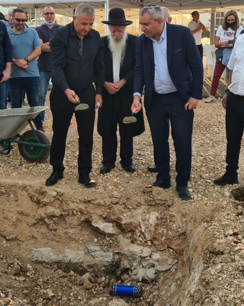 הנחת אבן פינה למוענות יום. השר זאב אלקין בנהריה (צילום: מיקי אלקובי)